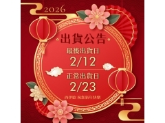 【春節期間出貨公告】 感謝您的支持與體諒, 因應春節假期,出貨與客服服務時間調整如下: ✦ 最後出貨日:2026 年 2 月 12 日(含)12:00 前完成下單 (逾時或未完成付款之訂單,將於開工後依序出貨) ✦ 2 月 12 日後成立之訂單, 將於 2026 年 2 月 23 日復工後 依訂單順序陸續出貨 ✦ 春節假期期間暫停出貨及客服服務, 期間之留言與私訊,...