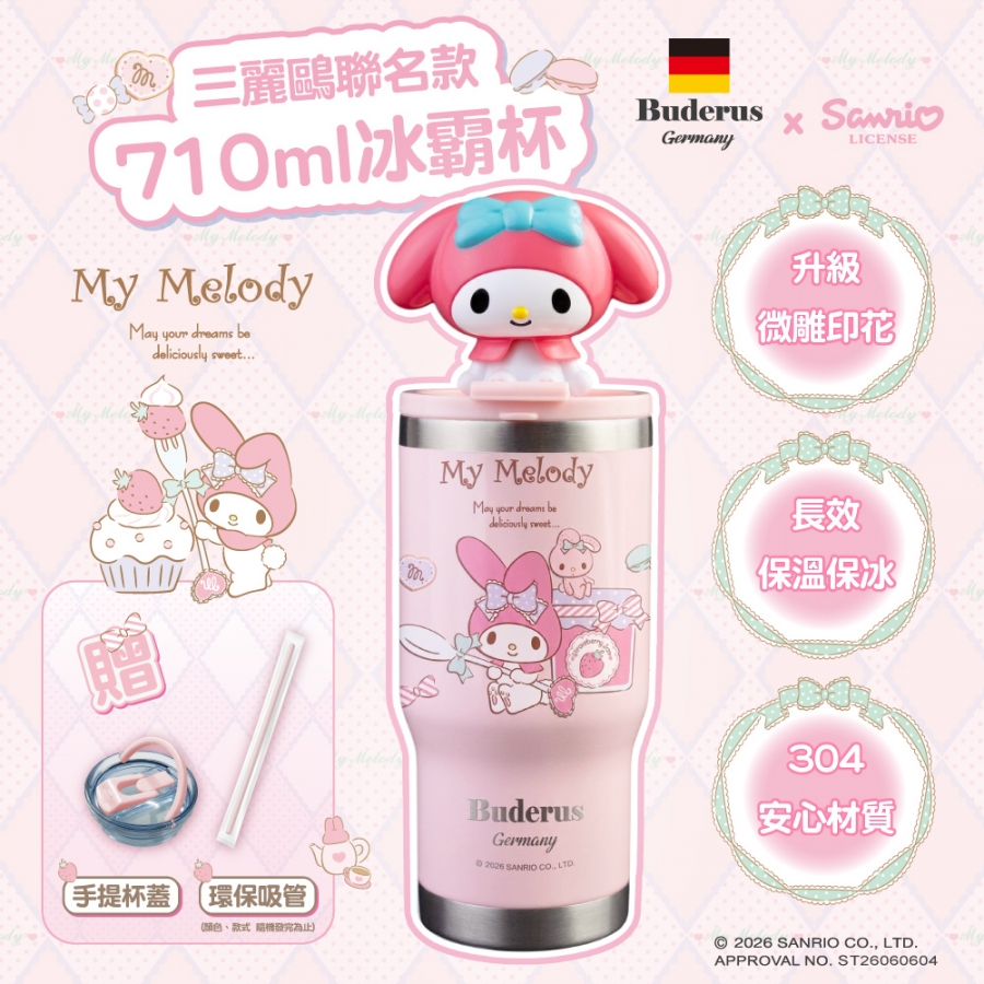 美樂蒂加碼送造型吸管蓋_三麗鷗聯名款304陶瓷公仔冰霸杯
