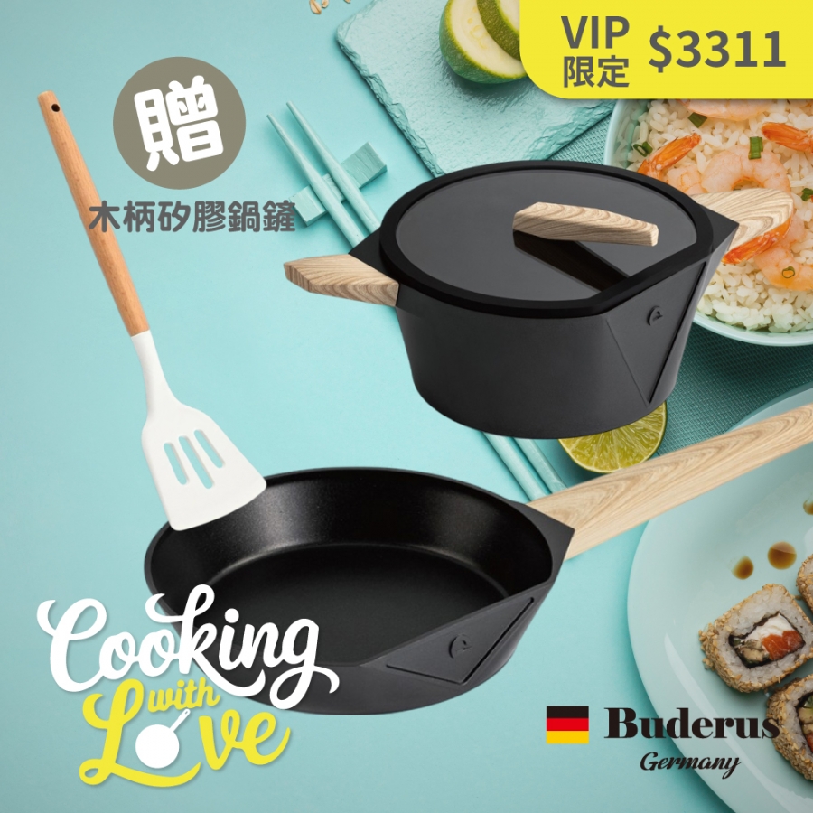 鑽石可立鍋系列_24cm平底鍋+24cm湯鍋(含蓋)-淺木紋